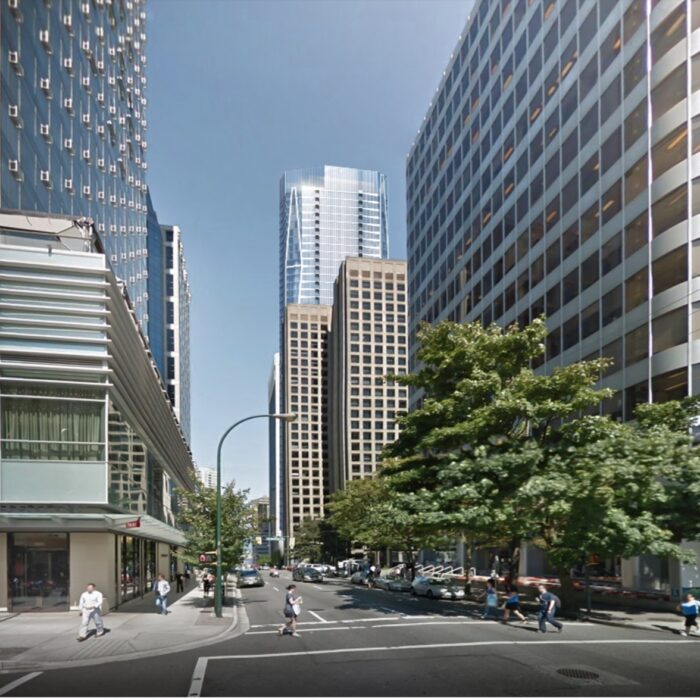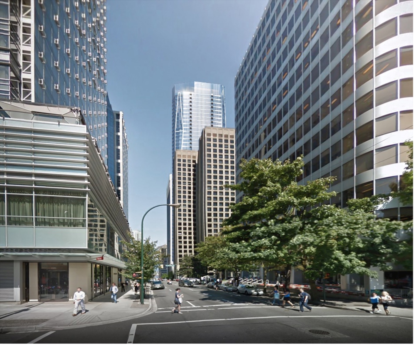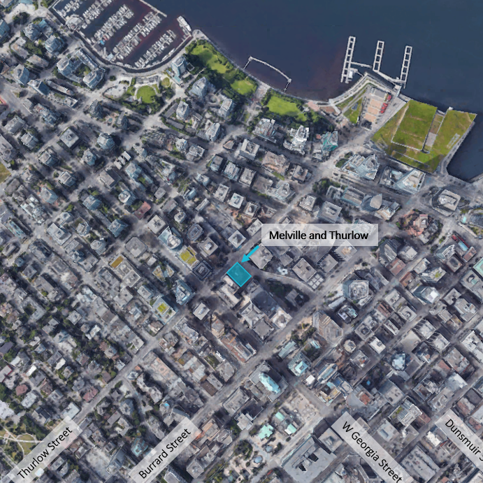 - Site: Currently a parking structure at the corner of Thurlow & Melville (behind the MacMillan Bloedel building, a designated heritage building).